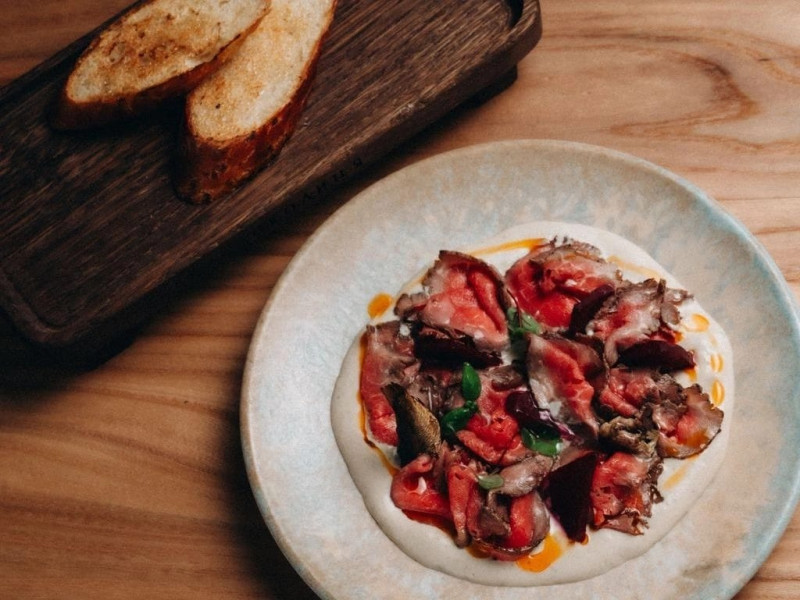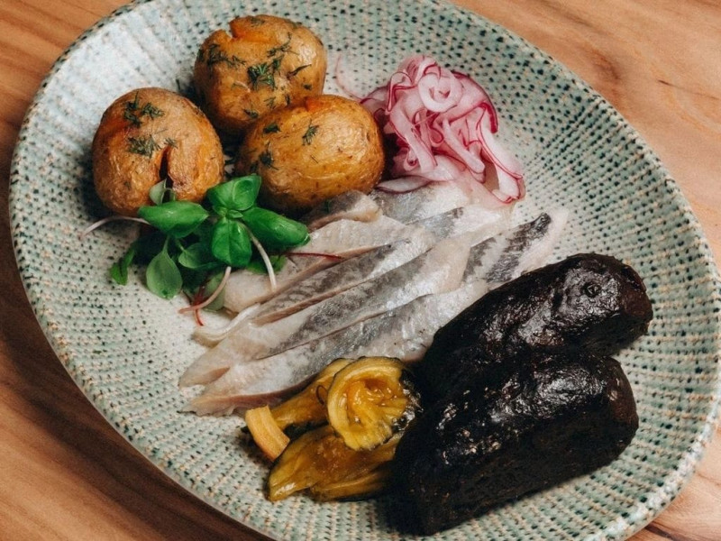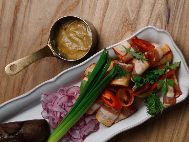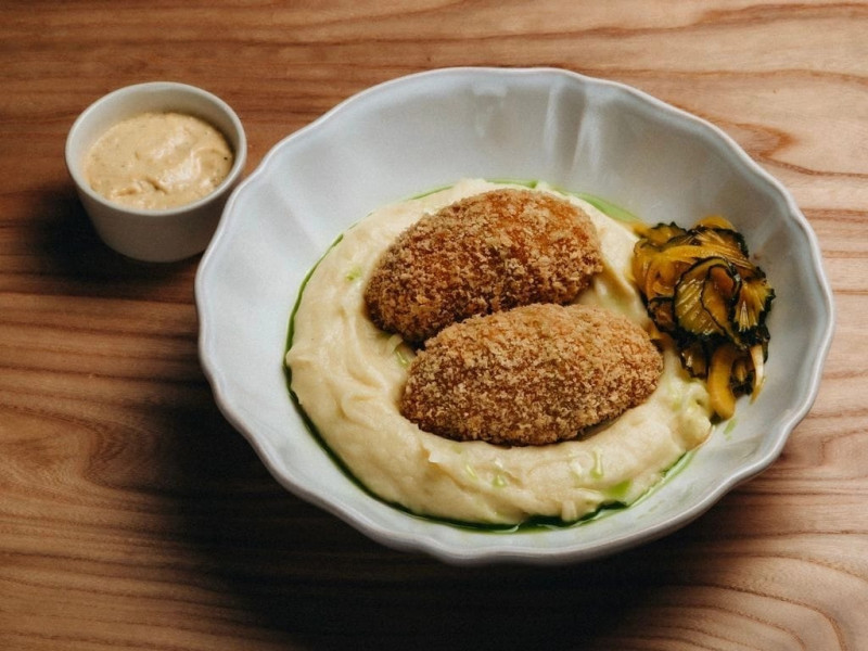 Фірмовий олів’є з ніжним яловичим язиком, маскарпоне та гірчичним айолі