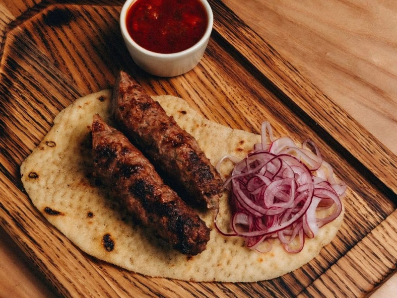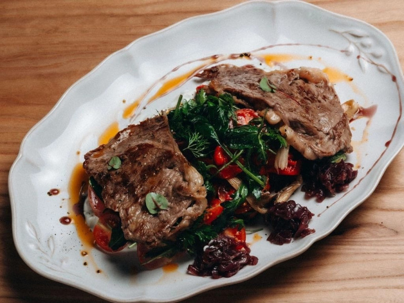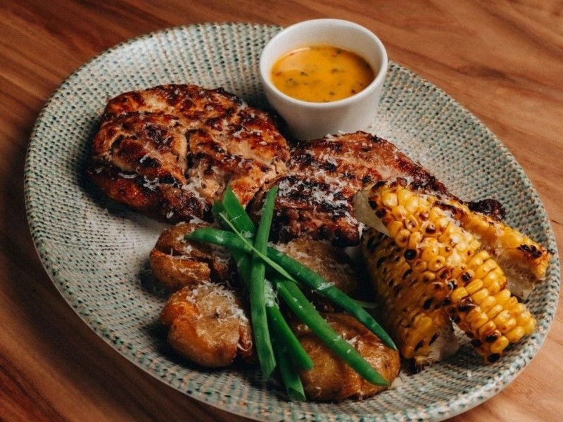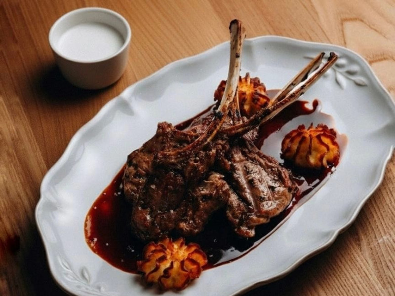 Міні стейк T-bone з ягняти, обсмажений на відкритому вогні.