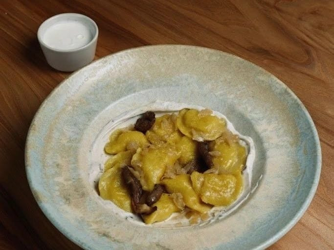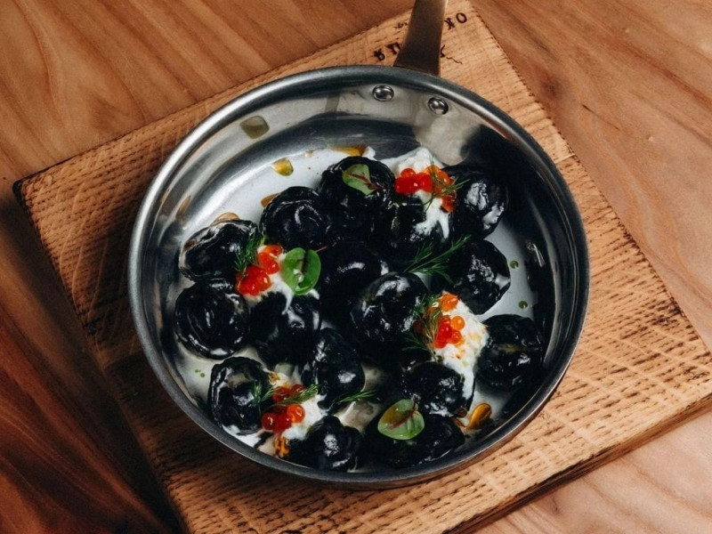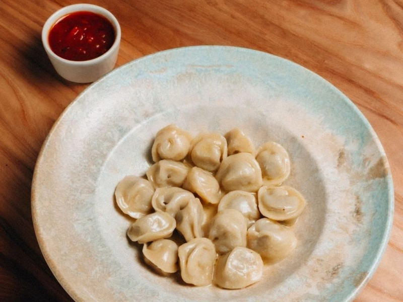 Ніжні пельмені з філе індички, подаються з ароматним бульйоном, вершковим маслом та фірмовими соусами
