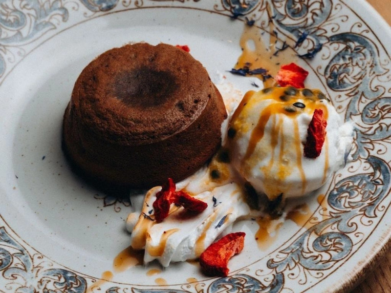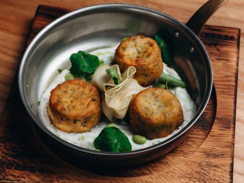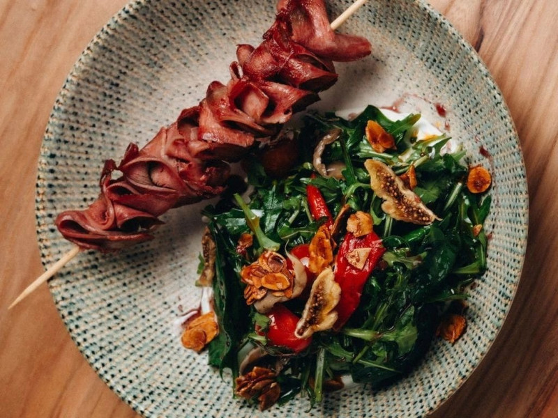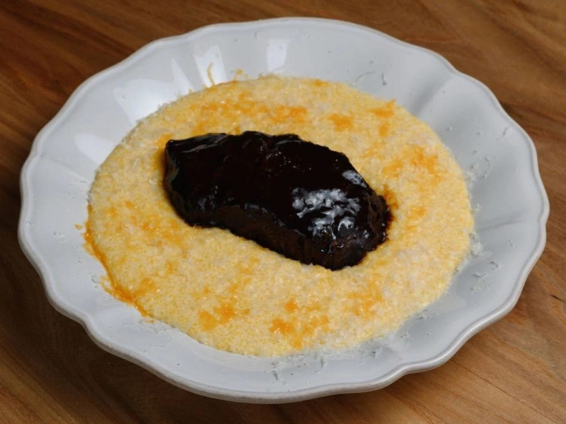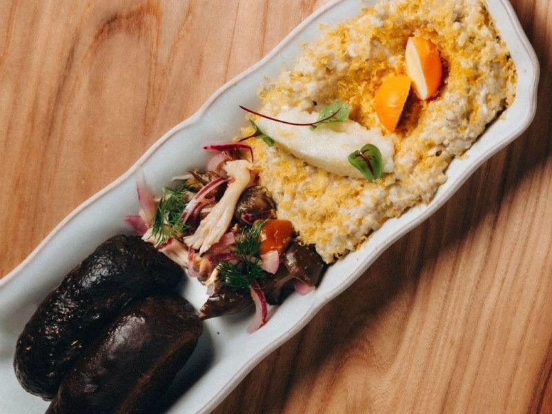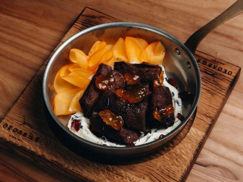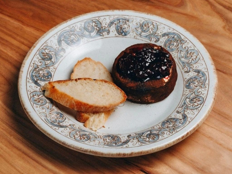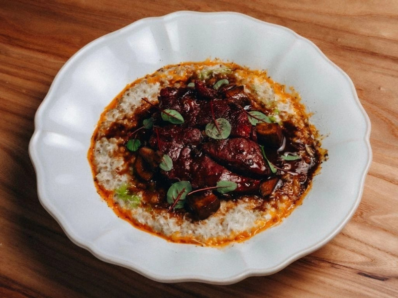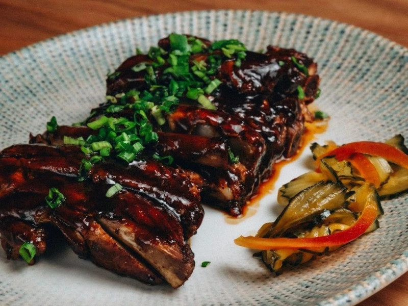 Качина ніжка конфі з ніжним пюре з батату та ягідними нотами.