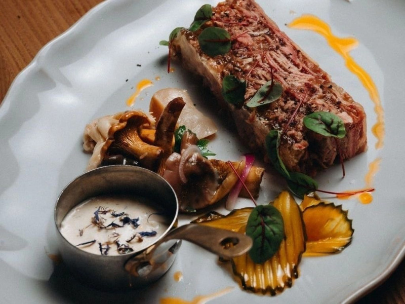 Ніжне філе міньйон з кремовим пюре та пікантним перечним соусом.