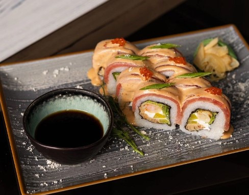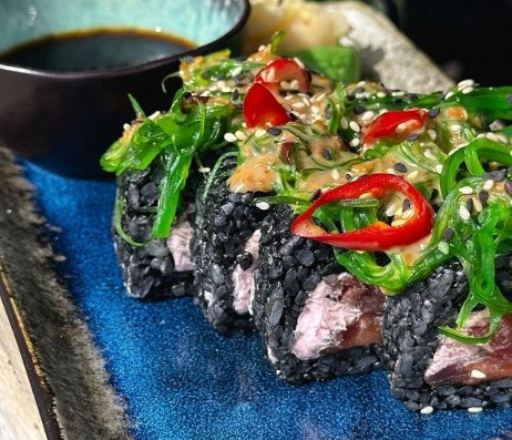 Рис, норі, подаємо з соєвим соусом, імберем та васабі