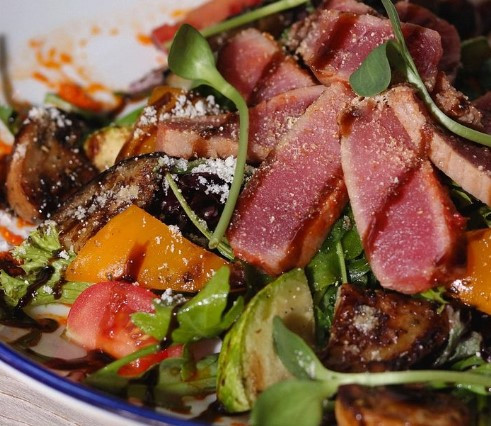Дорадо, сібас, форель райдужна, стейк тунця, стейк лосося, судак, овочі на грилі, картопля дольками