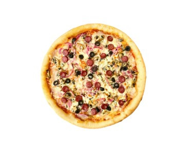 з салямі та грибами - салямі, шампіньйони, помідор, сир Моцарела, соус томатний