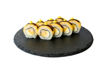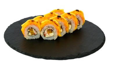 Тигровий - норі, рис, сир філадельфія, тамаго, суміш сурімі, масаго, креветка відварна, соус солодкий чилі