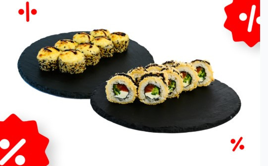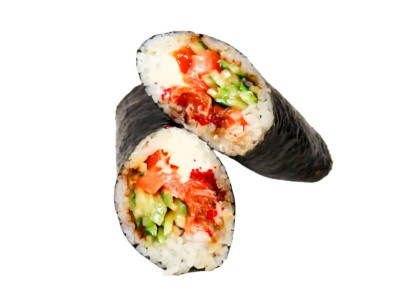 Червоний - норі, рис, сир філадельфія, тунець, огірок, масаго, лосось