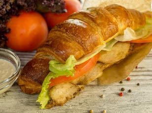сочное кориное филе, листья салата, заправска "Цезарь"